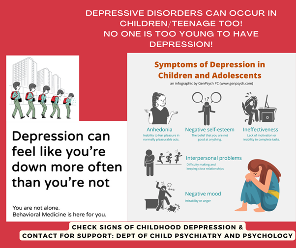 Common variants of mood disorders include deprssive disorders and bipolar disorders. Untreated depression or mood disorders in children and adolescents may increase the risk of substance abuse, poor work, academic, and social functioning and risk of suicidal behaviors.